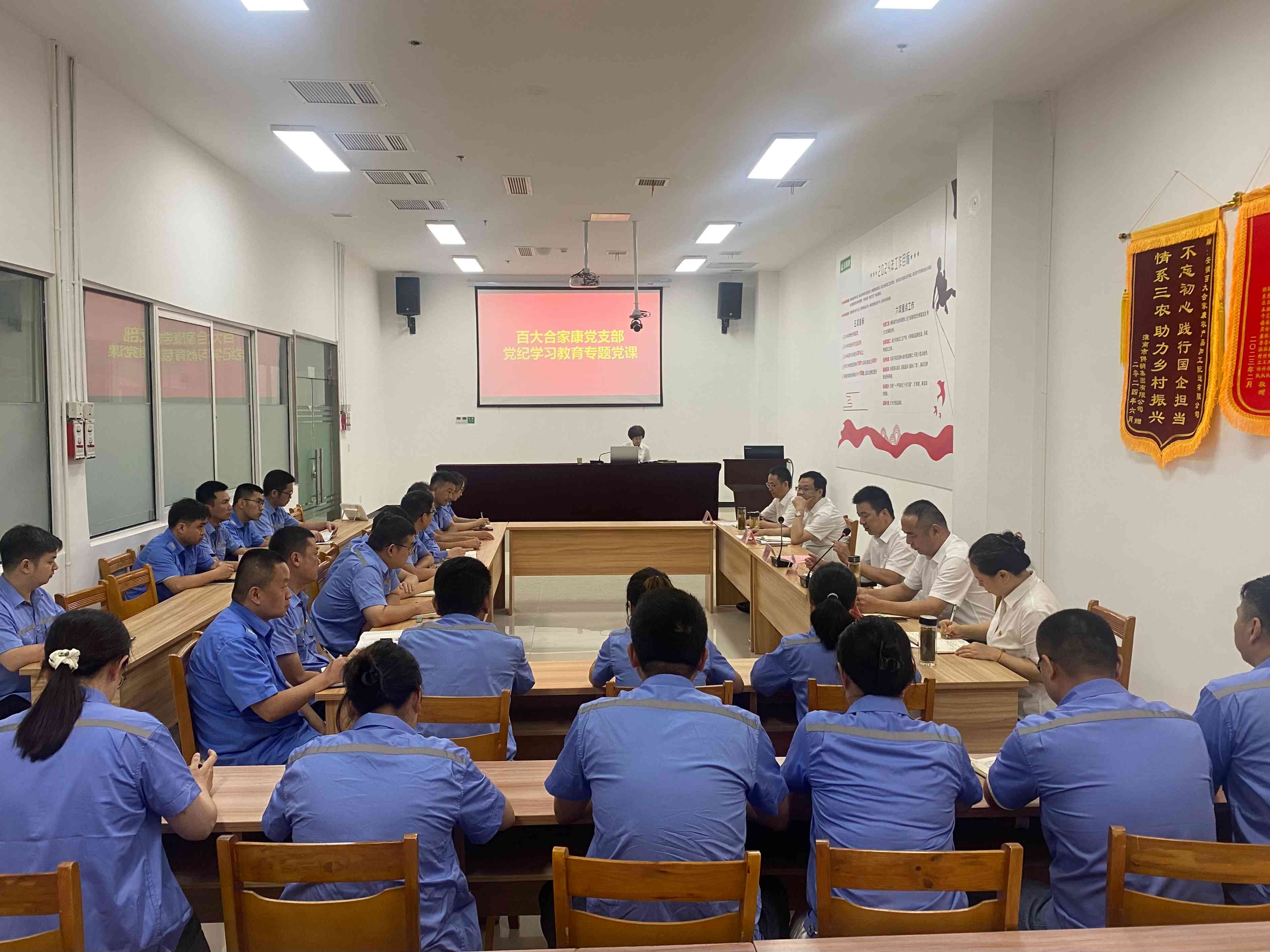 2024年7月16日,百大集团党委委员、工会主席裴文娟至百大合家康党支部开展党纪学习教育专题党课,公司高度重视,组织全体党员、积极分子、中层管理人员以及“三