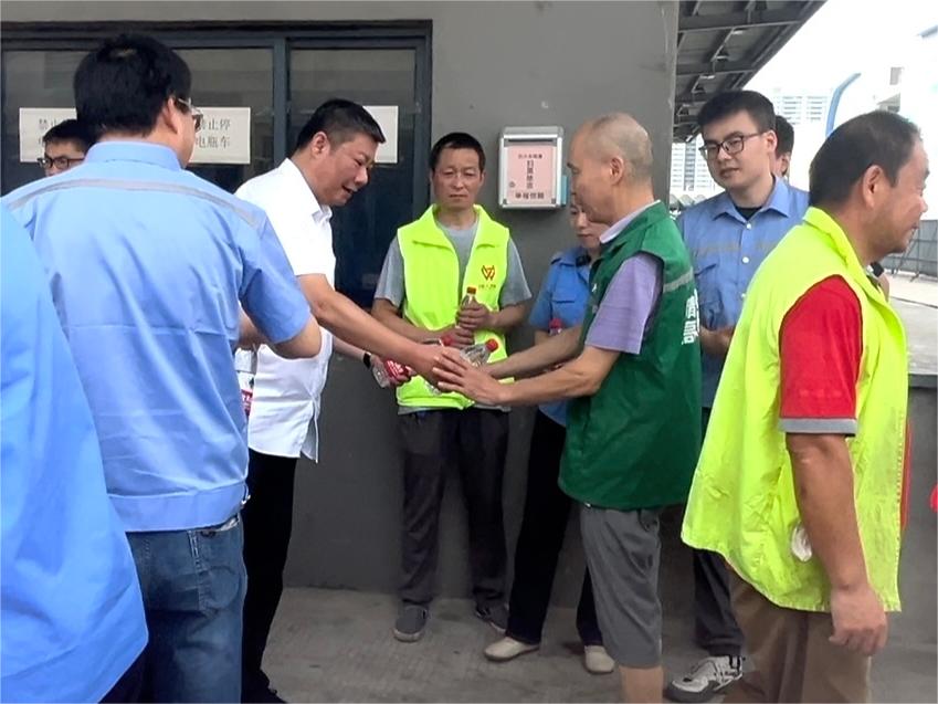 正值“中伏”前后,酷暑难挡,合家康公司一线工作人员依然坚守岗位,辛勤工作。2024年7月26日下午,百大集团党委副书记、董事赵伟一行赴百大合家康作业现场,为