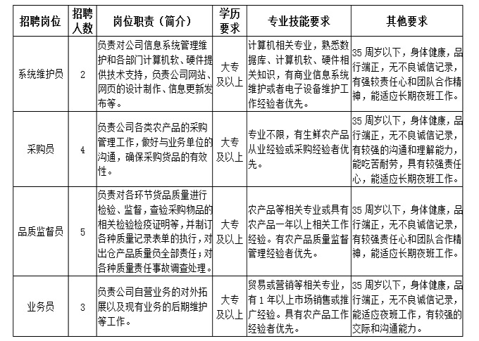 根据公司经营发展需要,现向社会公开招聘以下岗位: