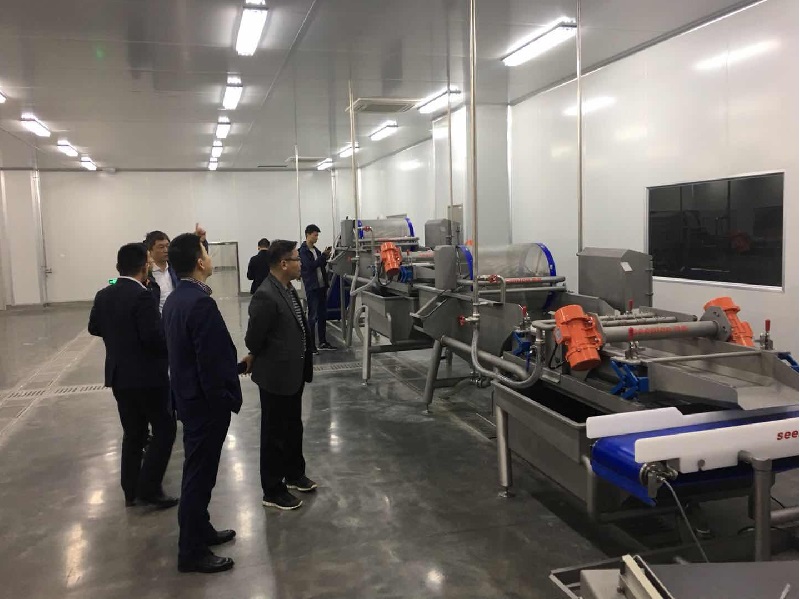考察组首先到苏州希恩工厂进行了实地学习与座谈,重点就蔬菜自动清洗,蔬菜加工,肉类切割等加工项目进行了了解与学习,就净菜肉类加工行业特点及产品结构进行深入交流与分享。