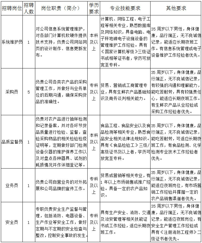 一、根据公司经营发展需要,现向社会公开招聘以下岗位: