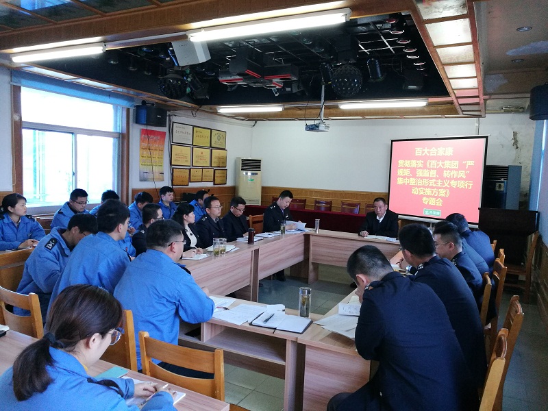 2019-04-013月25日,百大合家康公司组织学习《百大集团公司“严规矩、强监督、转作风”集中整治形式主义官僚主义专项行动实施方案》专题会,会议由公司董事长王静主持,公司全体党员、中层助理以上管理人员参加了会议。