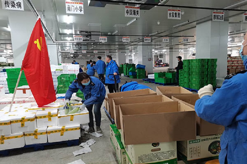 接到命令后,全体党员从四面八方赶到在现场集结,与团购小组并肩作战,全面投入到套菜的加工包装与分发工作中。工作现场热火朝天,洋溢着一片紧张繁忙的气氛,哪里有需要,哪里就有公司党员忙碌的身影。支部党员个个犹如猛虎下山一般,脏活累活抢着干,充分发挥了党员干部的先锋模范作用。有了党员突击队的加入,现场马上形成一股有力的生力军,在党员的带动下,现场团购小组的干劲更足了,不到2个小时就迅速包装出260份套菜。