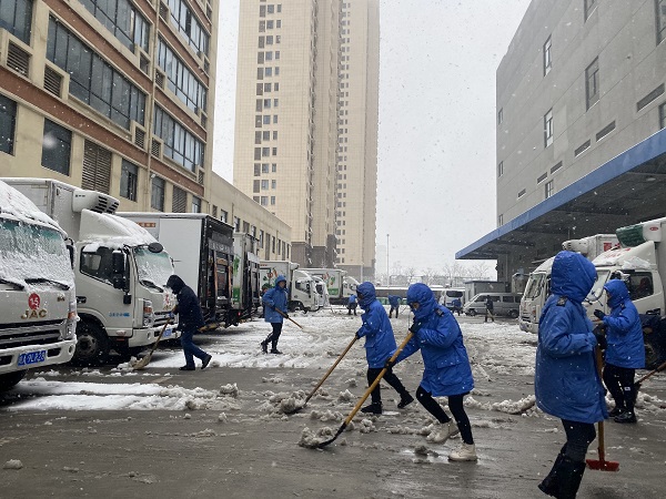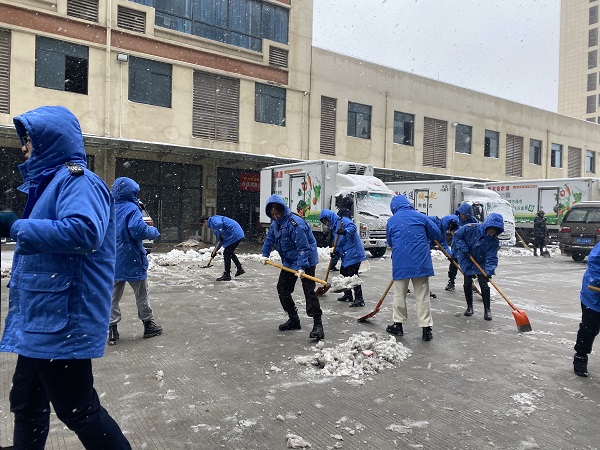 2022年2月7日,虎年开工第一天,合肥也迎来了首场大雪。由于持续降雪,路面积雪明显,部分路段结冰,为使道路通行顺畅不结冰,确保配送车辆及广大员工安全、有序出行,公司第一时间启动应急处置预案,领导班子成员迅速带领党员突击队和行政人员开展园区道路扫雪除冰行动。